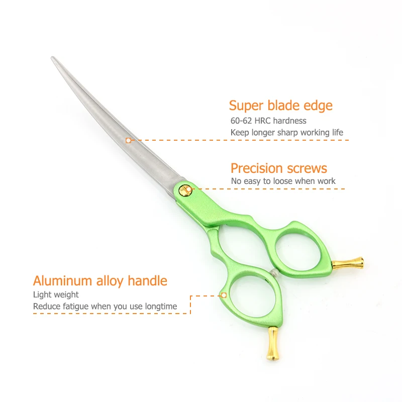 Product Name: Dog Grooming Scissors Curved 7 Inch Professional Dog Curved Hair Scissors Dog Grooming Shears Japan 440C Lyrebird 5PCS/LOT NEW